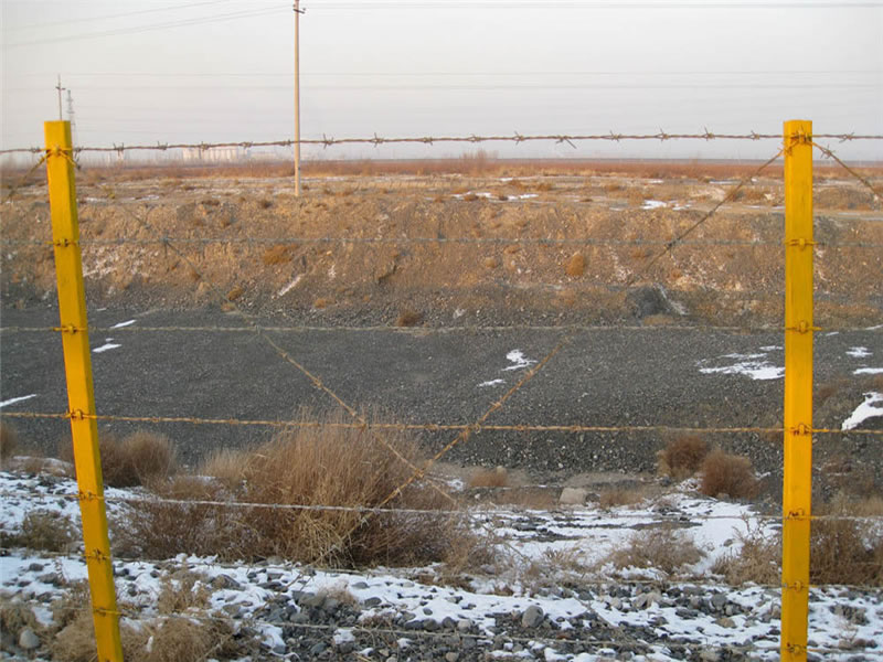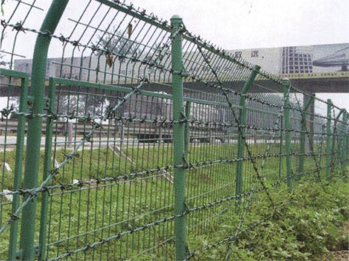 刺鐵絲隔離柵是一種新型防護網。該產品具有嚇阻效果好、美觀、施工便利.經濟實用等優異特點。刀片刺繩防護網主要用于園林公寓、機關單位、監獄、哨所、邊防等的圈禁防護。刀片刺繩防護網由銳利尖角鍍鋅鋼板或不銹鋼薄板做刀片,高張力鋼絲做芯線組合而成的阻絕器材。由于刀片刺繩防護網造形獨特不易觸摸,因而能達到極好的防護隔離效果。直線形刀片刺網由刀片型直線刺網交叉焊接成型,可用于防盜窗、高速護欄、隔離柵。施工迅速、效果顯著。刀片刺繩防護網,有多種架設方式可供選擇,施工迅速,既省經費,又可達到嚇阻的效果。